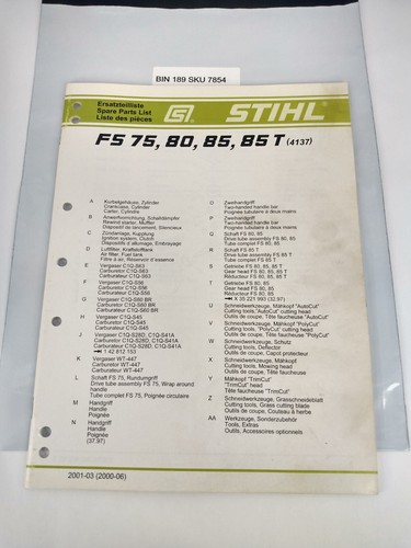 Genuine Stihl Fs 75 80 85 85 T 4137 Parts List Manual Ebay