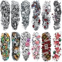 Amazon Com Full Arm Temporary Tattoo 18 Sheets Konsait Extra Temporary Sleeve Tattoo Black Waterproof Tattoo Body Stickers For Man Women Beauty Personal Care